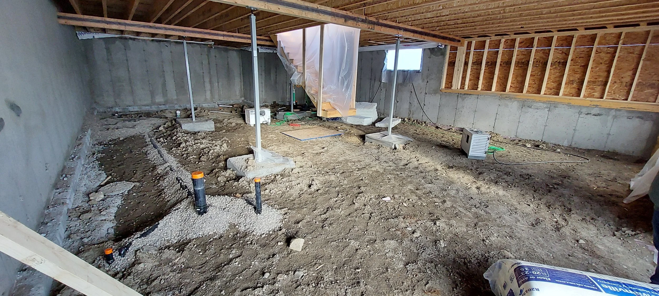 The correct installation of gravel, weeping tile and poly are integral to the longevity of any basement floor.